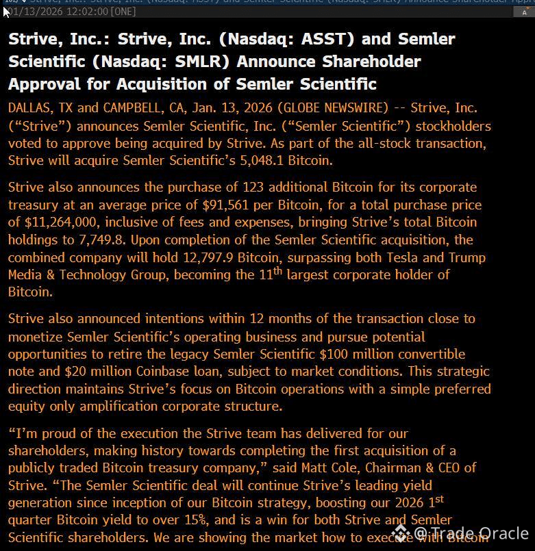 💥 Strive has officially approved its acquisition of Semler Scientific — and this is more than just a business deal. It’s a major power move in the Bitcoin arena. 🧠📈