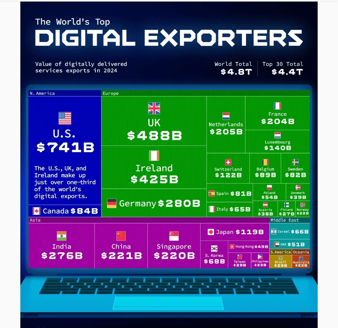 Wartość cyfrowo dostarczanych eksportów USA wyniosła 741 miliardów dolarów w 2024 roku, co oznacza wzrost o 11% w stosunku do poprzedniego roku.