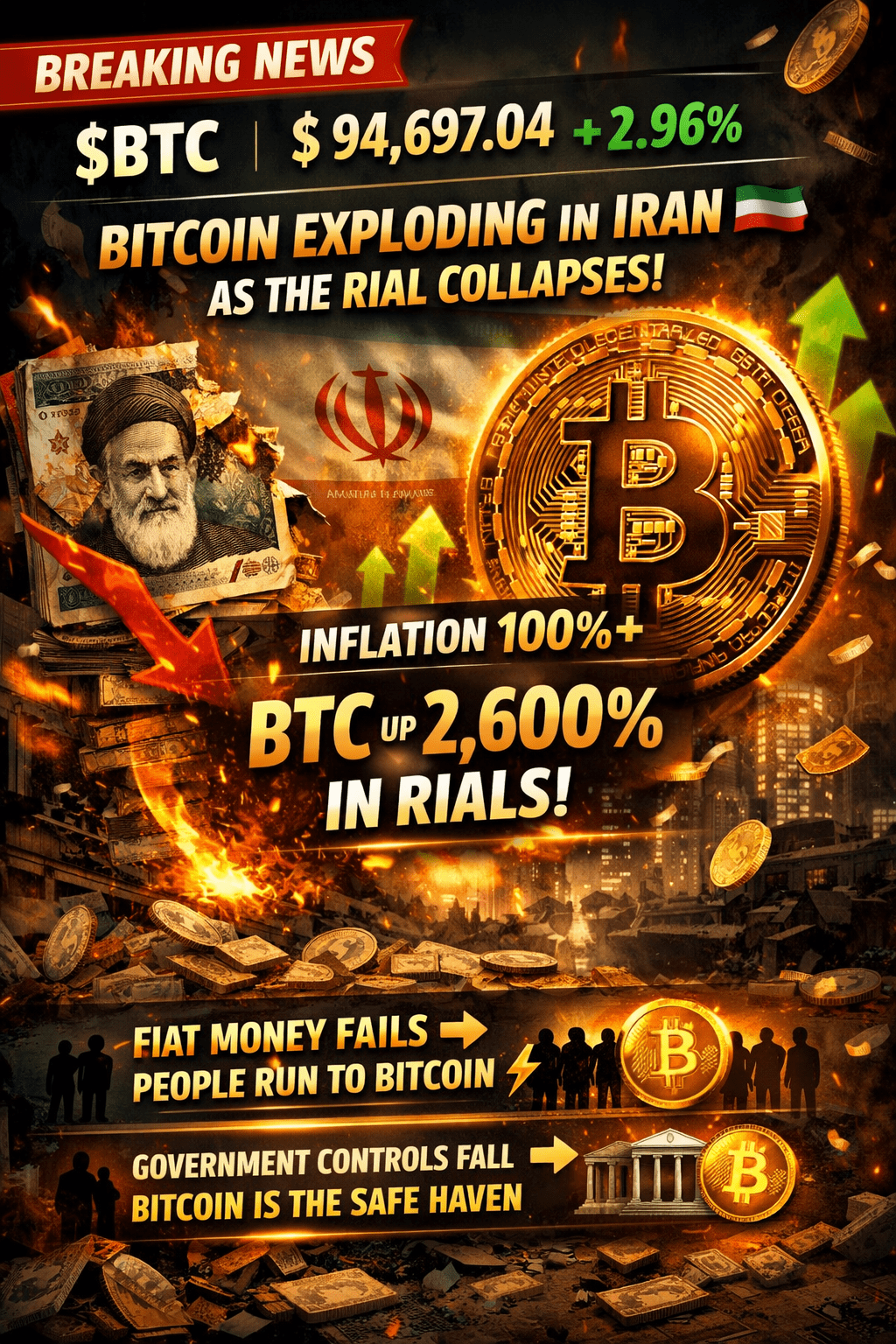 Bitcoin eksploduje w Iranie 🇮🇷 — ale nie dlatego, że Bitcoin nagle stał się silniejszy.