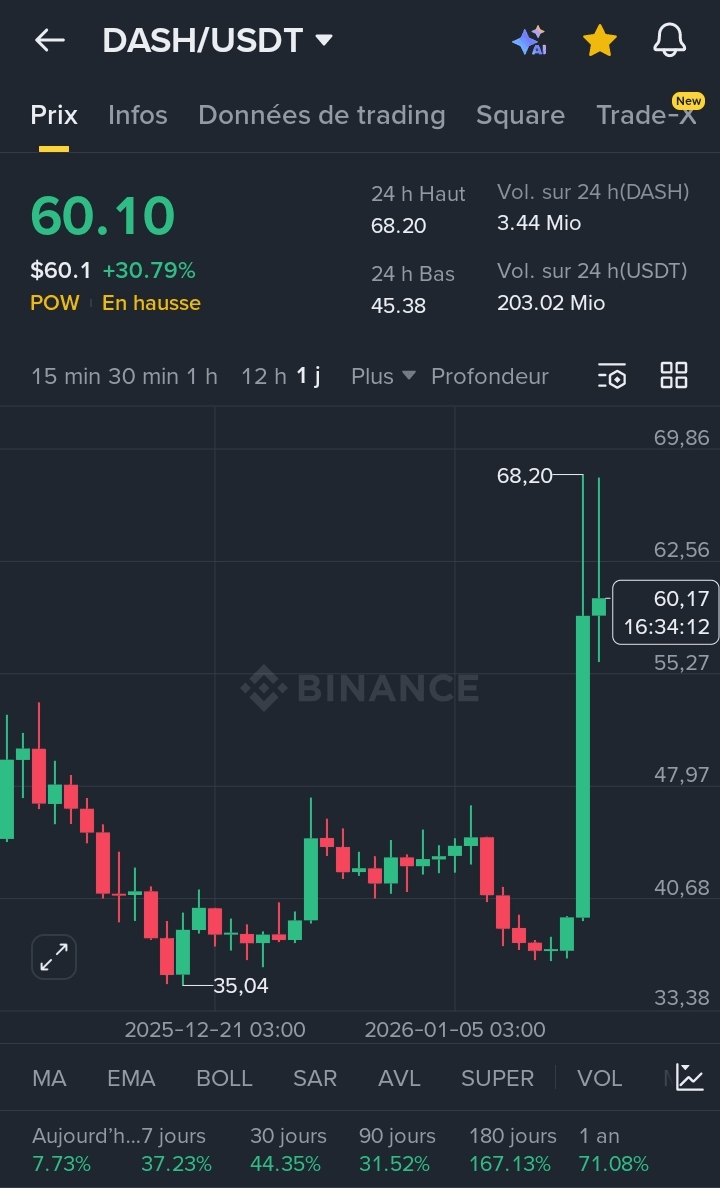 * Wysoka wydajność na dłuższy okres: W ciągu roku DASH wykazuje obecnie wzrost o +71,08 %, przewyższając wiele aktywów z pierwszych 100.