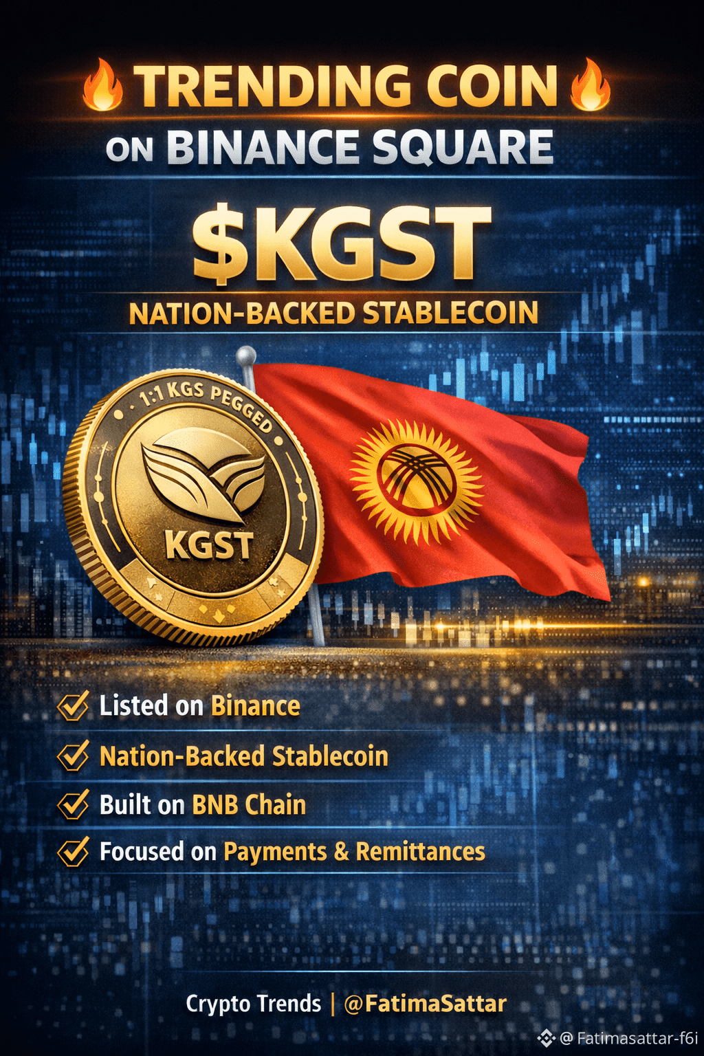 $KGST is a government-backed stablecoin pegged 1:1 to the Kyrgyzstani som (KGS) — Kyrgyzstan’s national currency. Instead of being a typical speculative crypto, $KGST is designed to function as digital money with the same value as the som, aiming to modernize payments, remittances, and everyday transactions. �