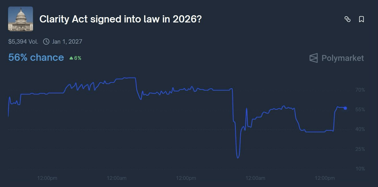 Rynek oczekuje 56% szans na to, że Ustawa o Jasności zostanie podpisana w tym roku.