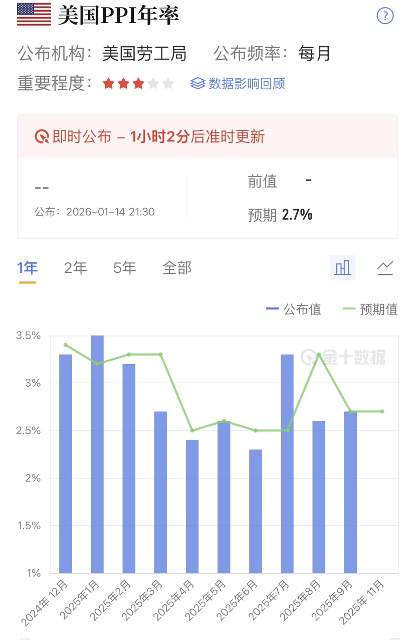 W listopadzie w USA wskaźnik PPI w końcu zostanie ogłoszony, a rzeczywista wartość publikacji idealnie wpisuje się w oczekiwaną wartość 2,7%. Te dane pojawiają się trochę późno (opóźnione z powodu zamknięcia rządu), ale rynek czekał na to „stabilne” słowo. PPI jako wskaźnik inflacji, stabilne ceny u góry nie szaleją, zasadniczo mówią wszystkim: presja w łańcuchu dostaw nie wymknęła się spod kontroli, ścieżka obniżek stóp procentowych przez Fed na razie nie wymaga paniki. Jeśli będzie wyższa niż oczekiwano, jastrzębie głosy natychmiast się nasilą, oczekiwania dotyczące stóp procentowych wzrosną, a ryzykowne aktywa takie jak Bitcoin i Ethereum mogą doświadczyć korekty o 2-4%, a kapitał natychmiast ucieknie w stronę bezpiecznych aktywów, na rynkach akcji i kryptowalut znowu rozegra się dramat. W końcu, kto odważy się mocno inwestować w wysokobeta w czasie rosnącej inflacji? Z drugiej strony, jeśli będzie niższa od oczekiwań, nawet tylko 2.5%, rynek zinterpretuje to jak „inflacja całkowicie wygasła, obniżki stóp procentowych przyspieszają”. Kapitał będzie szturmować rynek ryzykownych aktywów, rynek kryptowalut w krótkim czasie łatwo wzrośnie o 2-4%, a może nawet więcej, ponieważ niskie stopy procentowe + luźna polityka monetarna to po prostu dar niebios dla Bitcoina, tak zwanego „cyfrowego złota”.