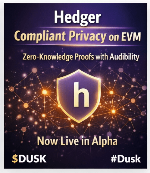 Ponieważ Hedger Alpha już działa, Dusk pokazuje, że zgodna prywatność to nie przyszła obietnica — to rzeczywistość już teraz. Ta innowacja pozwala instytucjom bezpiecznie budować rozwiązania na łańcuchu bez ujawniania danych własnych lub poufnych danych użytkowników. Po połączeniu z DuskEVM oraz nadchodzących platform takich jak DuskTrade, Hedger wzmocnia pozycję $DUSK jako lidera w infrastrukturze Web3 dla instytucji. Prywatność, zgodność i użyteczność nie są już kompromisami — są wbudowane od samego początku. #dusk