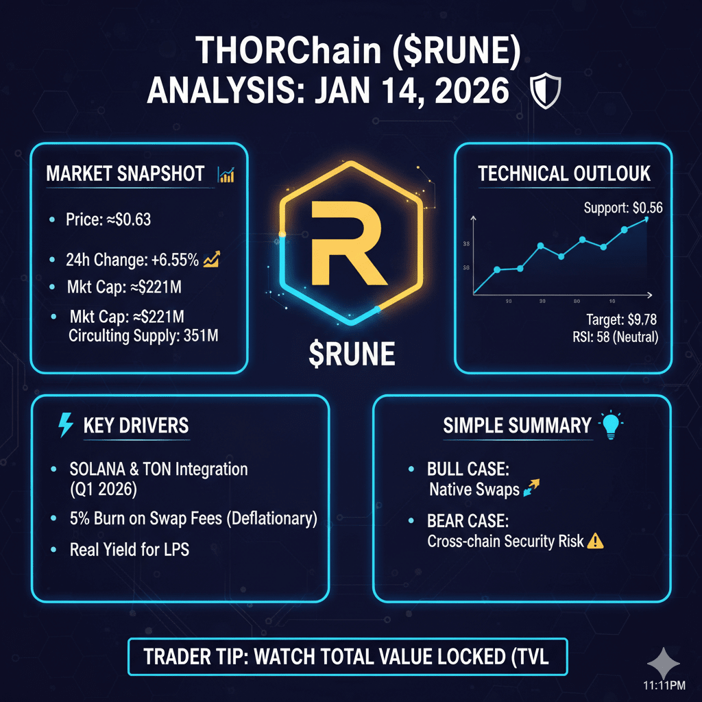 * Integracja z Solaną i TON: Największe wydarzenie pierwszego kwartału 2026 roku to ostatni krok THORChain w kierunku integracji natywnej Solany ($SOL) i wymiany TON. Pozwala to użytkownikom przemieszczać aktywa między tymi ogromnymi ekosystemami bez pośredników, co znacznie zwiększa przydatność $RUNE.