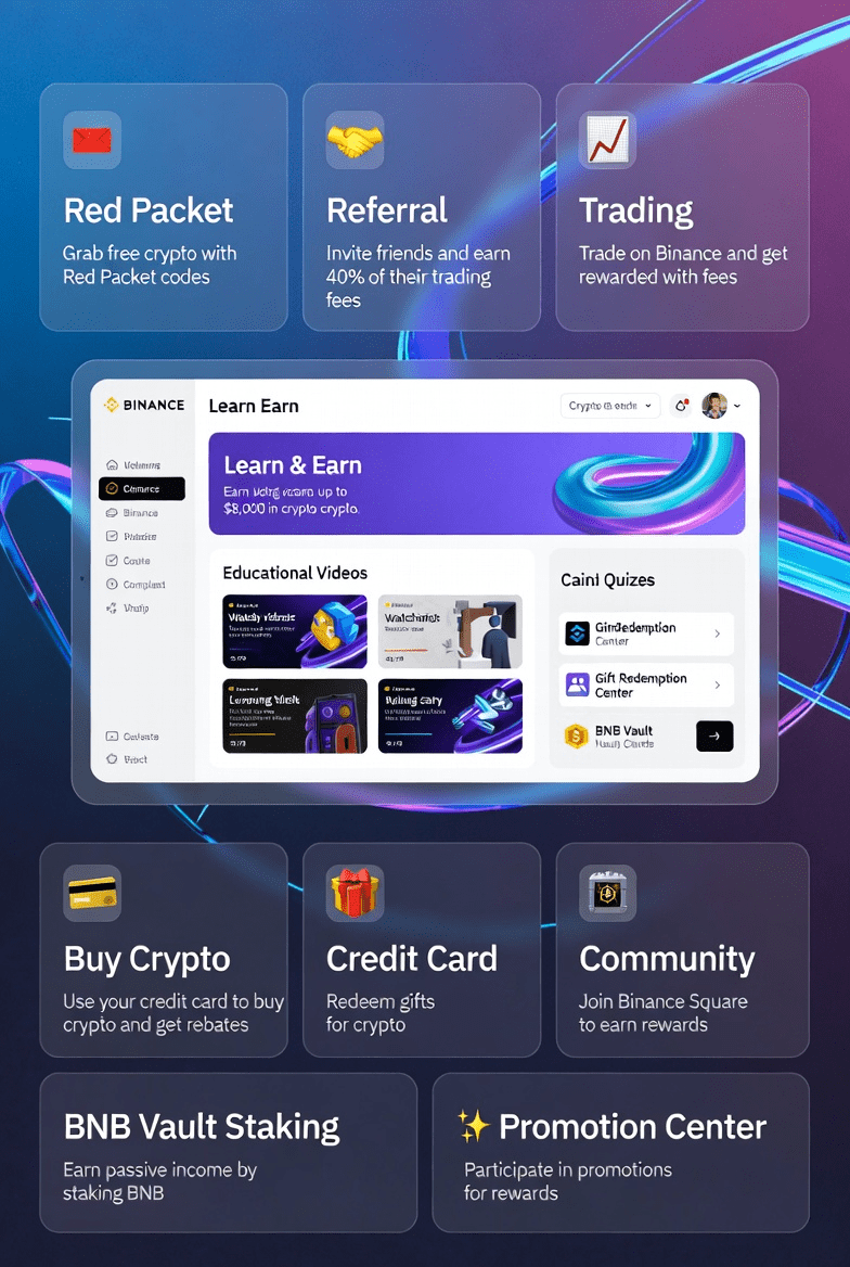 Oto legalne sposoby zdobycia darmowego kryptowaluty na Binance w 2026 roku bez żadnego początkowego inwestowania (nie wymaga to wpłaty ani zakupu własnych środków). Te metody opierają się na obecnych i trwających funkcjach Binance, takich jak programy edukacyjne, promocje i systemy rekomendacji.