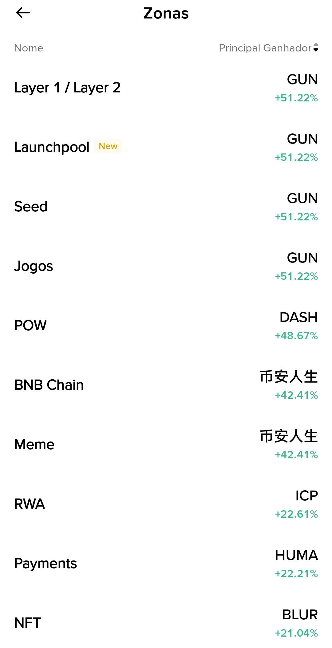 - Gry (GameFi): GUN (+51,22%) – Sektor gier blockchain w wzroście.
