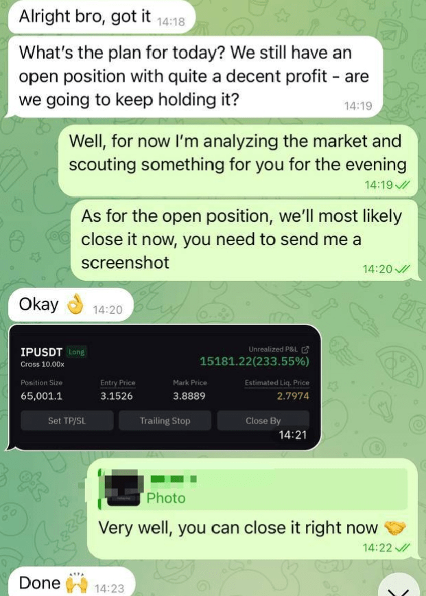 Rozmowa na zrzucie ekranu odzwierciedla sytuację, z którą każdy trader w końcu się spotyka: