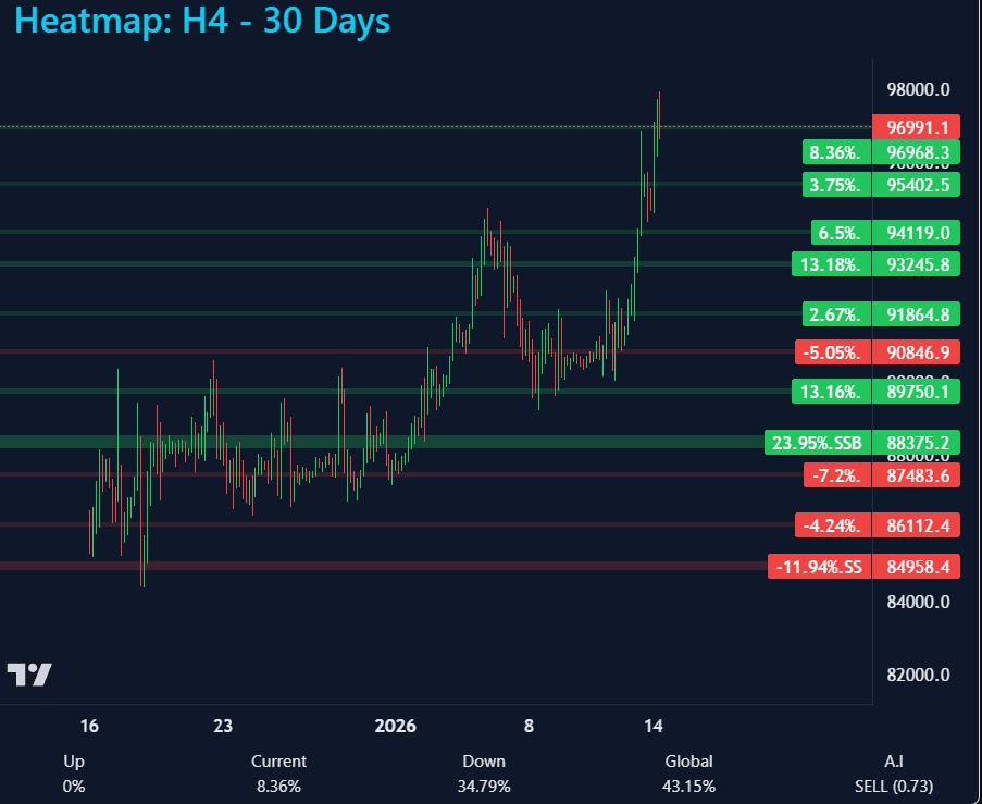 Jeśli w nadchodzących dniach nie wystąpi żadne nieoczekiwane zdarzenie makro, cena może poszukiwać płynności nieco poniżej $93.245 przed kontynuacją ruchu wzrostowego.