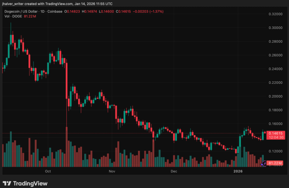Po kilku miesiącach spadków i ochłodzenia nastrojów na rynku, Dogecoin (\u003ct-29/\u003e) w końcu wykazuje oznaki długo wyczekiwanej poprawy. Ostatnio cena stopniowo stabilizuje się w przedziale 0,14–0,15 USD, nie tylko uwalniając się od wcześniejszego, trwającego przez kilka tygodni trendu spadkowego, ale także ponownie przyciągając uwagę pewnej grupy inwestorów krótkoterminowych i spekulantów. Mimo że ogólny rynek kryptowalut wciąż przechodzi przez fazę wahań, ruch Dogecoina jest już wyraźnie inny, a presja sprzedaży znacznie osłabła, co stworzyło przestrzeń na rozwój w następnej fazie rynku.