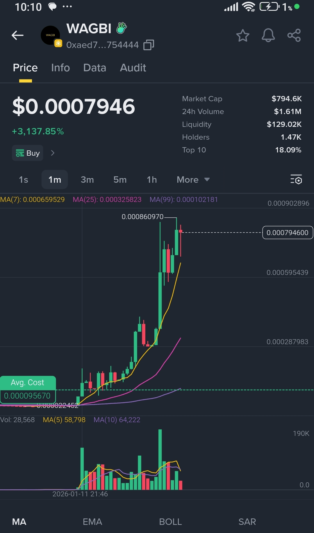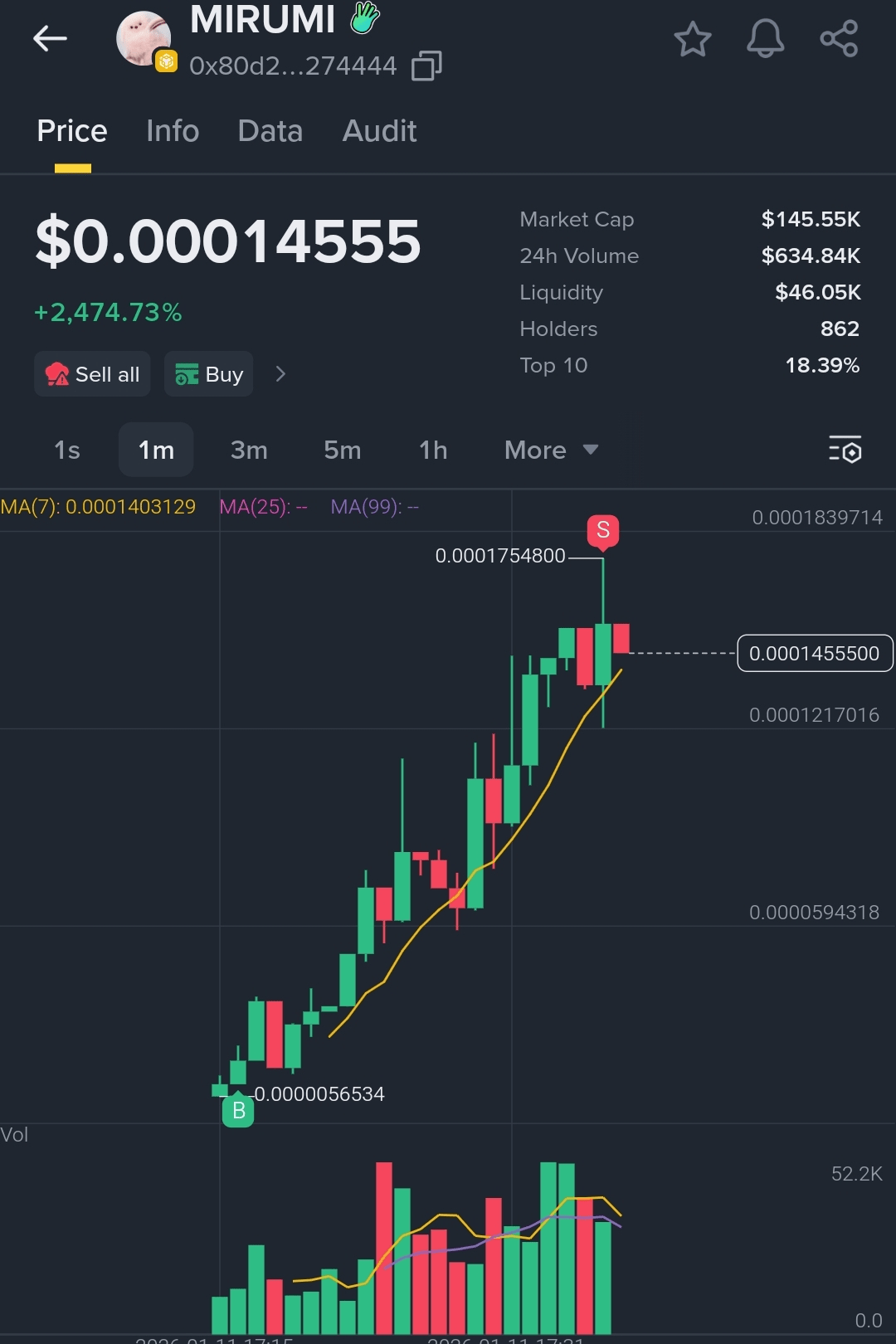 Wpadłem wcześnie — około 100k kapitalizacji rynkowej.