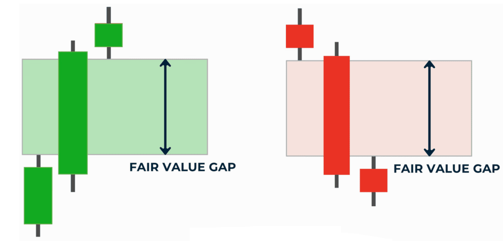 Luka wartości sprawiedliwej powstaje, gdy cena porusza się zbyt szybko w jednym kierunku, zostawiając na wykresie obszar, w którym rynek nie odbył odpowiednich transakcji. Wyobraź sobie świecę, która gwałtownie rośnie lub spada, tworząc niezrównoważenie między kupującymi a sprzedającymi – to właśnie Twoja luka wartości sprawiedliwej. To jak brakujący element w układance rynku. 🧩