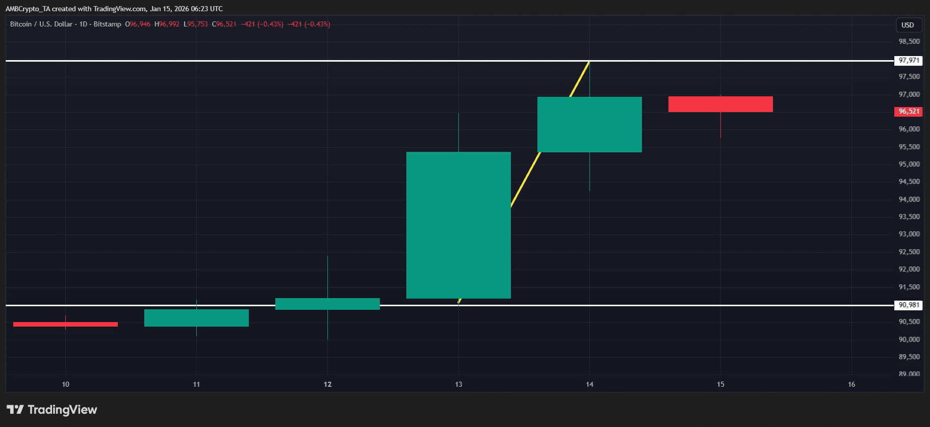 Bitcoin gwałtownie zbliżył się do 97 000 dolarów, rynek znów „idzie w przeciwną stronę”