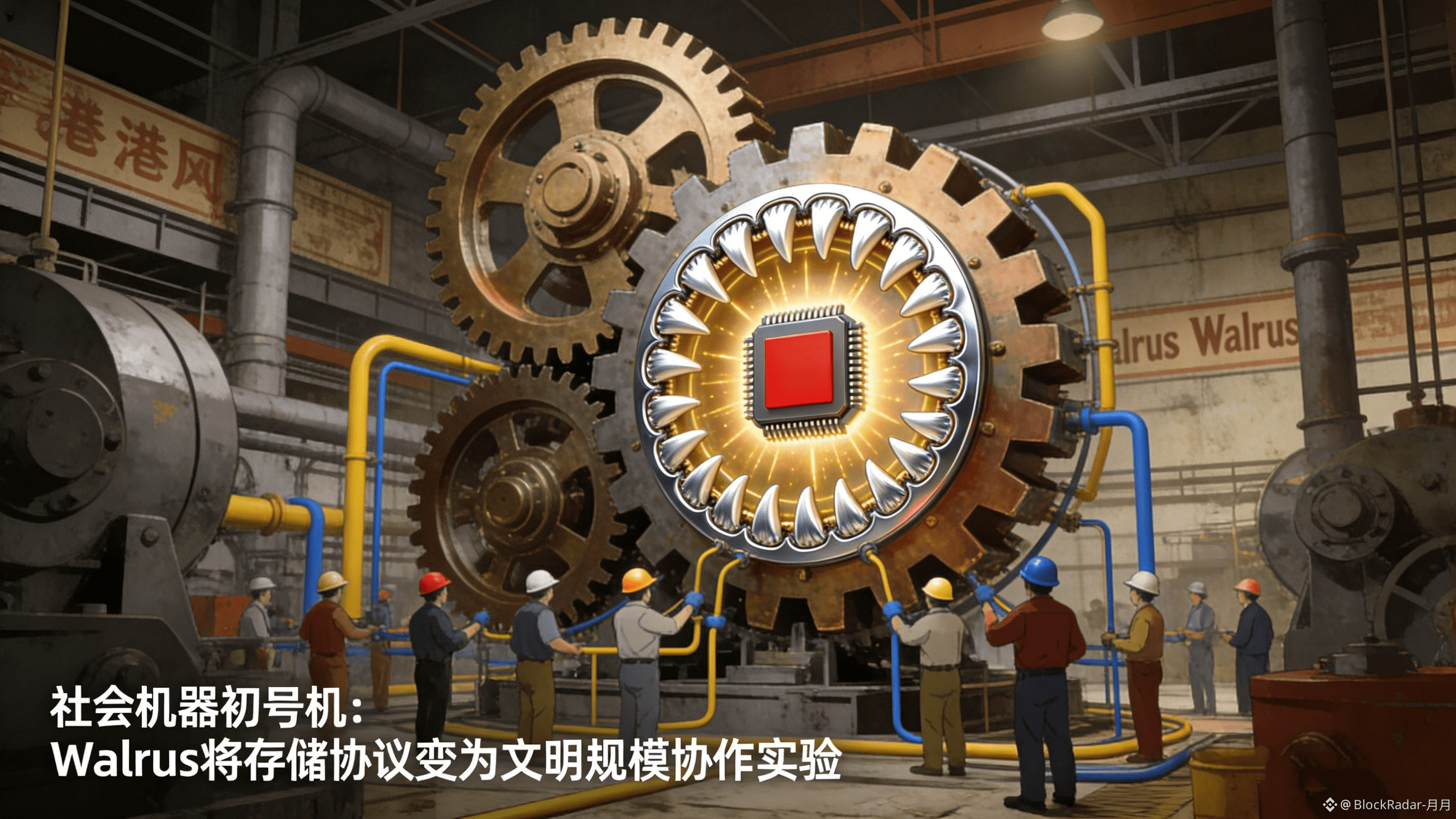 所以,观察和参与Walrus,不仅仅是关注一个区块链项目,更是见证和参与一场关于人类如何自组织的、静默但深刻的探索。当我们在谈论存储成本、吞吐量和冗余因子时,我们真正在试探的,或许是数字时代“社会契约”的源代码。Walrus这台“社会机器初号机”的每一次运转,都在为我们驶向那个未知的未来,积累着不可或缺的经验与教训。