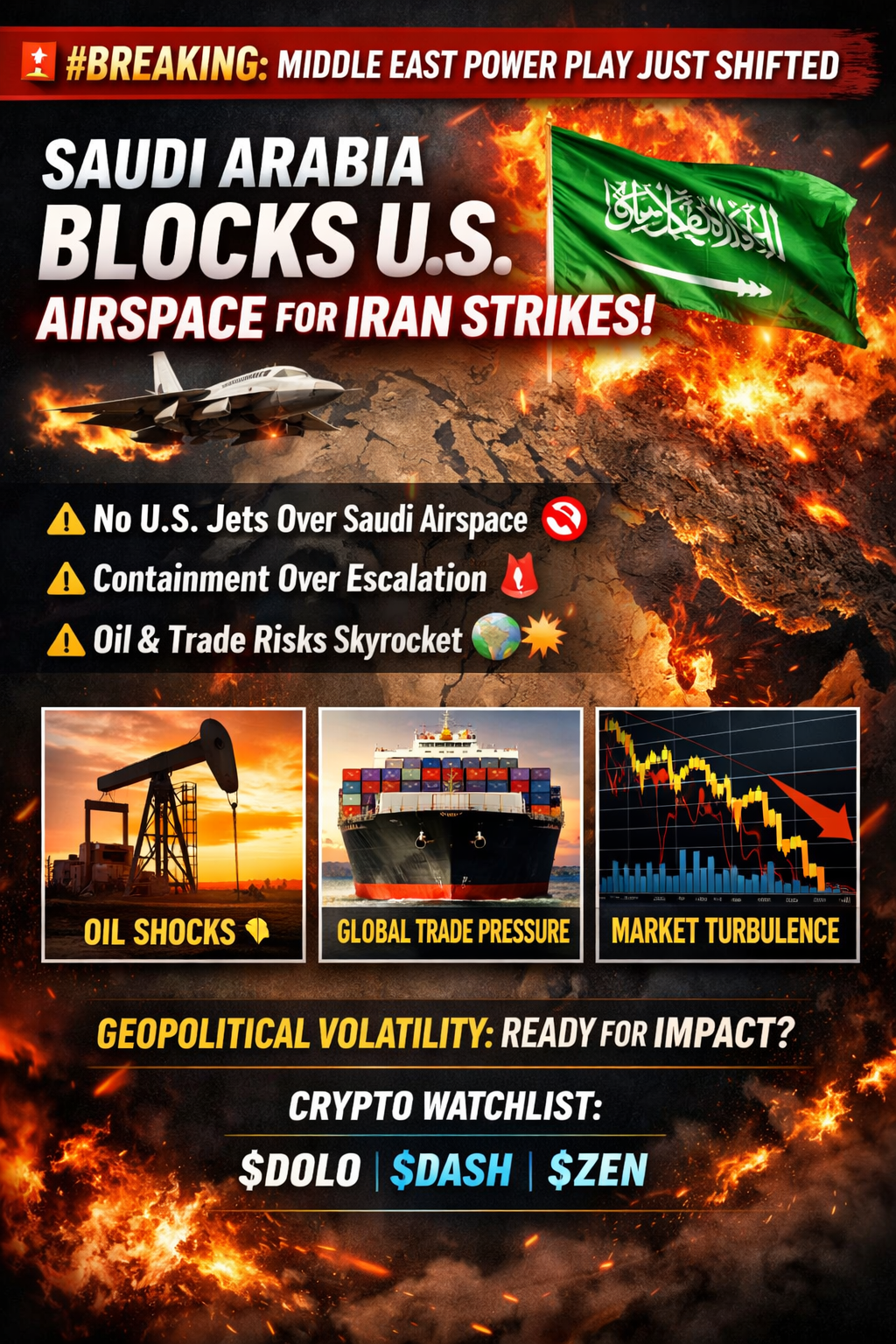 👉 Nie będzie zezwolenia na używanie przestrzeni powietrznej Saudi na żadne ataki na Iran przez siły zbrojne USA.