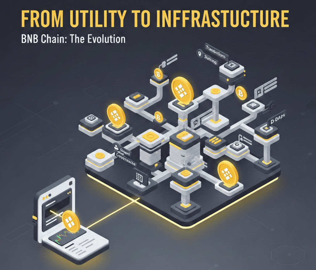 Zaczęło się od bardzo praktycznego pomysłu: uczynić handel na Binance tańszym i bardziej płynnym. Z biegiem czasu ta mała użyteczność przerodziła się w coś znacznie większego. Dziś BNB jest paliwem całego ekosystemu nazwanego BNB Chain, używanego do transakcji, smart kontraktów, stakowania, zarządzania i codziennej aktywności on-chain. To, co czyni BNB interesującym, to ta ewolucja — to nie jest token, który szuka zastosowania, to token, który naturalnie się rozwijał w miarę wzrostu popytu. Od użyteczności wymiany do aktywów infrastrukturalnych, BNB odzwierciedla, jak rzeczywiste wykorzystanie może kształtować blockchain w czasie.