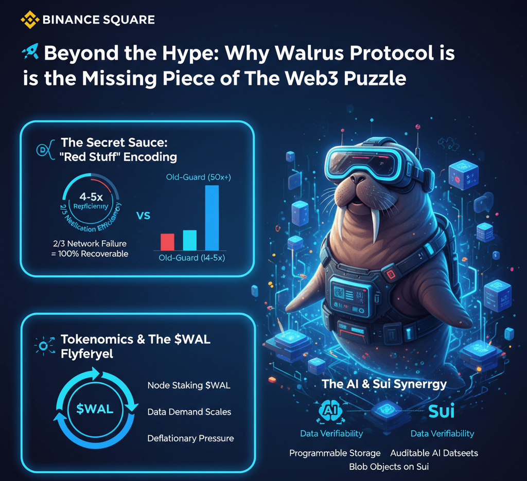 Standardowe blockhainy są świetne pod kątem bezpieczeństwa, ale straszne pod kątem przechowywania danych. Przechowywanie jednego gigabajta na łańcuchu jest nie do przyjęcia pod względem kosztów. To właśnie @Walrus 🦭/acc i jego natywny token Wal zmieniają grę.