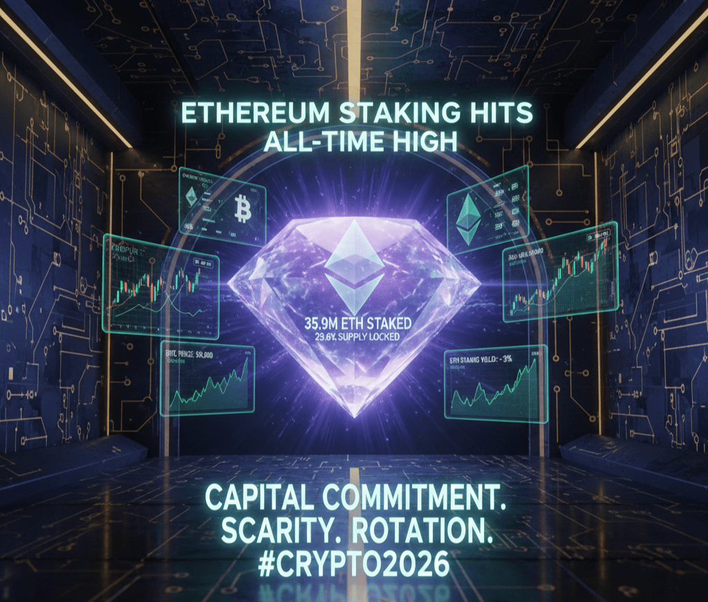 Ethereum oficjalnie wszedł w nową erę bezpieczeństwa sieci. Od stycznia 2026 roku ilość ETH zablokowana w kontraktach stakingowych osiągnęła rekordową wartość 35,9 miliona ETH.