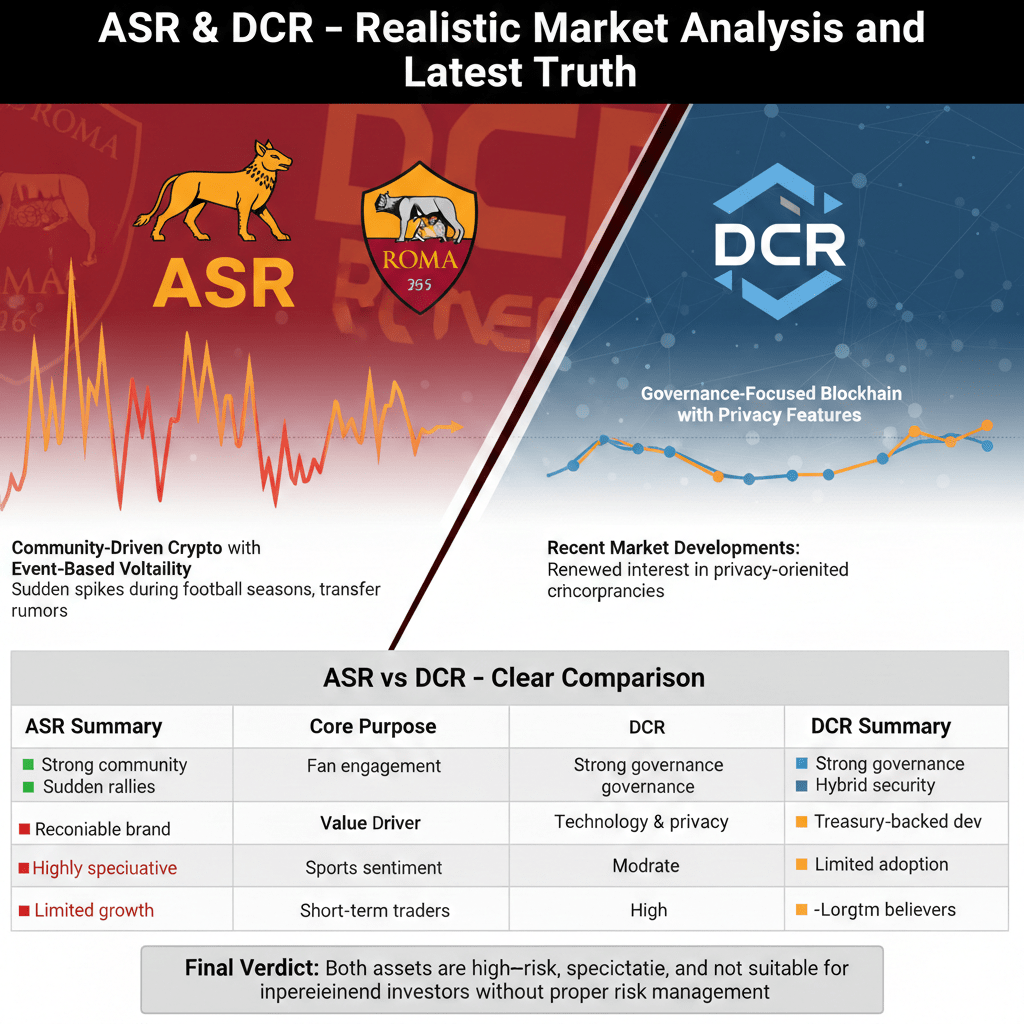 DCR jest fundamentalnie silniejszym projektem z rzeczywistymi przypadkami użycia w zakresie zarządzania i prywatności, ale wciąż napotyka wyzwania związane z przyjęciem i regulacjami. Jego ruchy cenowe zależą od szerszego sentymentu rynkowego wobec prywatności i zdecentralizowanej kontroli.