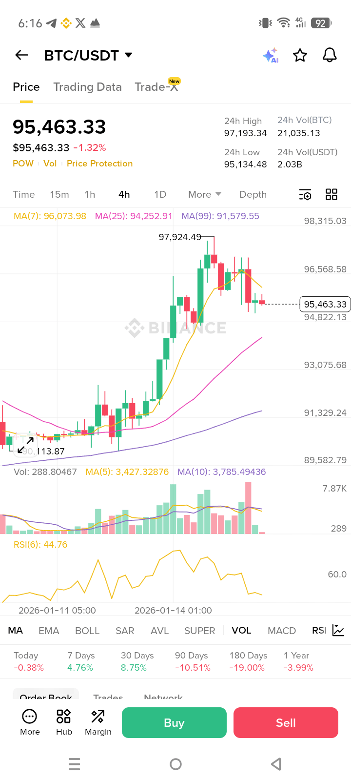 Bitcoin jest blisko $100K** (~4.75% w odległości), ale musi pokonać natychmiastowy opór i pokazać silniejszy momentum zakupowy. Jeśli bycze momentum wznowi, **$100,000 jest osiągalne wkrótce. Jeśli nie, może najpierw konsolidować.