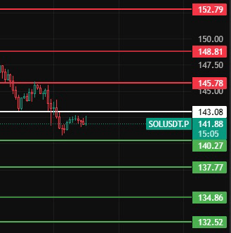 SOL dziś zwróć uwagę na 143 to miejsce, tylko 4-godzinny poziom zamknięcia powyżej tego miejsca zakończy tę korektę, a rynek będzie kontynuował wzrost, na górnym poziomie oporu zwróć uwagę na 145-148-152 w pobliżu tych pozycji!