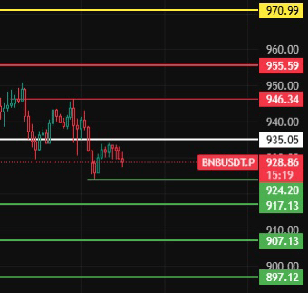 BNB dzisiaj zwróć uwagę na 935 to miejsce, tylko 4-godzinny poziom zamknięcia powyżej tego miejsca zakończy tę korektę, a rynek będzie kontynuował wzrost, na górnym poziomie oporu zwróć uwagę na 946-955-970 w pobliżu tych pozycji!