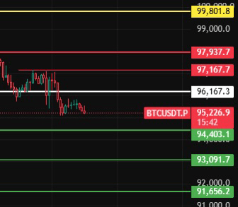 Dziś 4-godzinny poziom zamknięcia nie osiągnął powyżej 96170, co oznacza, że 4-godzinny poziom nadal przechodzi przez korektę, na dolnym poziomie wsparcia zwróć uwagę na 94400-93100-91650 w pobliżu tych pozycji!#BTC走势分析
