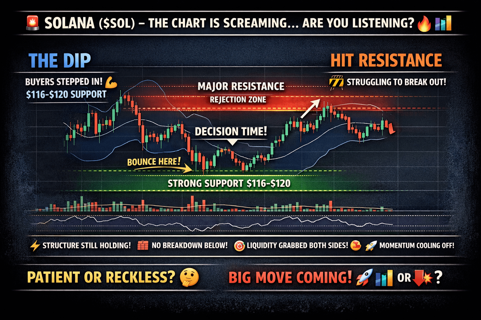 W tej chwili $SOL znajduje się w strefie zagrożenia dla niecierpliwych inwestorów — i strefie możliwości dla mądrych pieniędzy.