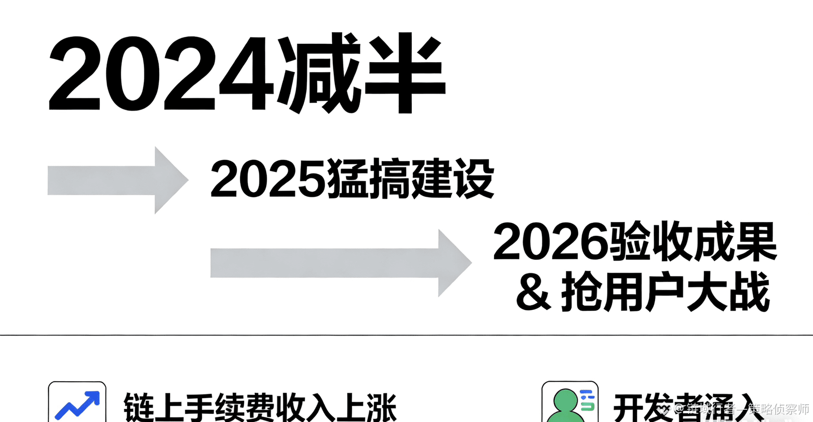 · 减半效应终于来了:2024年减半,但生态建设需要时间。2025年各个项目拼命搞建设,2026年就是验收成果、抢用户的时候。