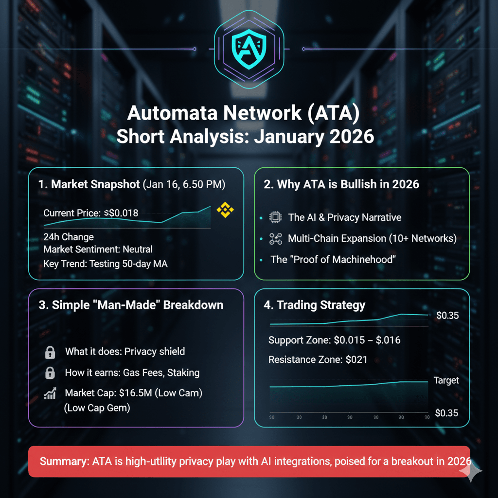 * Outlook: Jeśli szersza narracja "Technologia Prywatności" lub "Infrastruktura AI" zyska na popularności w tym kwartale, ATA może łatwo podwoić swoją wartość do celu $0.035.