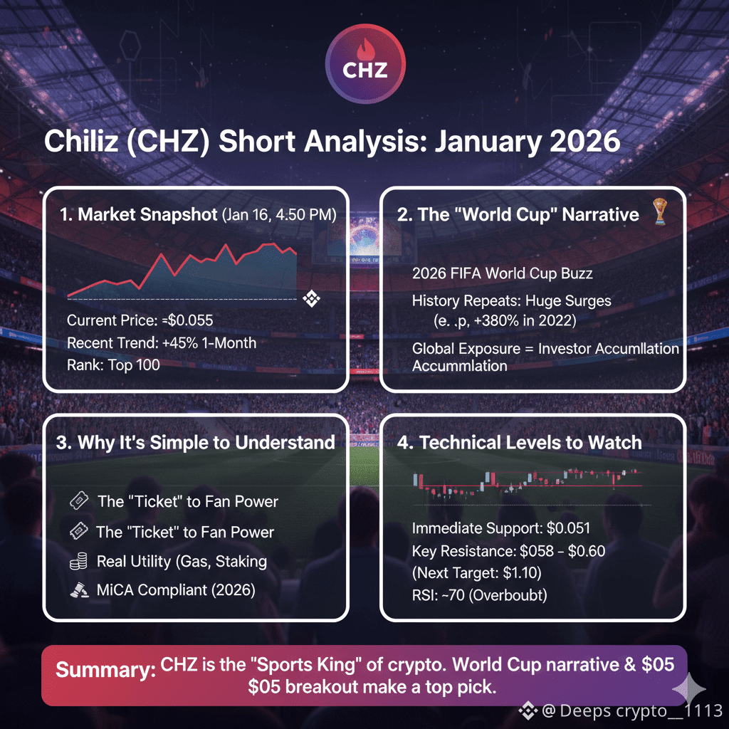 * Global Exposure: With the 2026 tournament being a massive global event, investors are accumulating CHZ early to bet on the "Sports Season" hype.