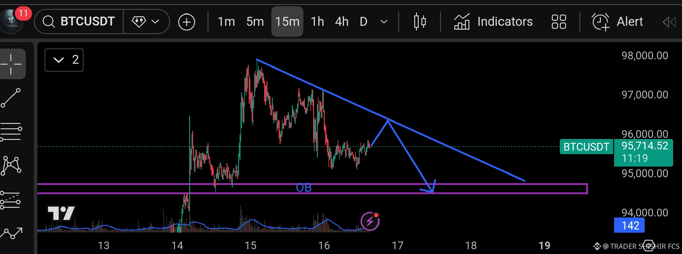There is a big liquidity pool around the 94,554 level, and price may need to sweep this liquidity before any meaningful move.