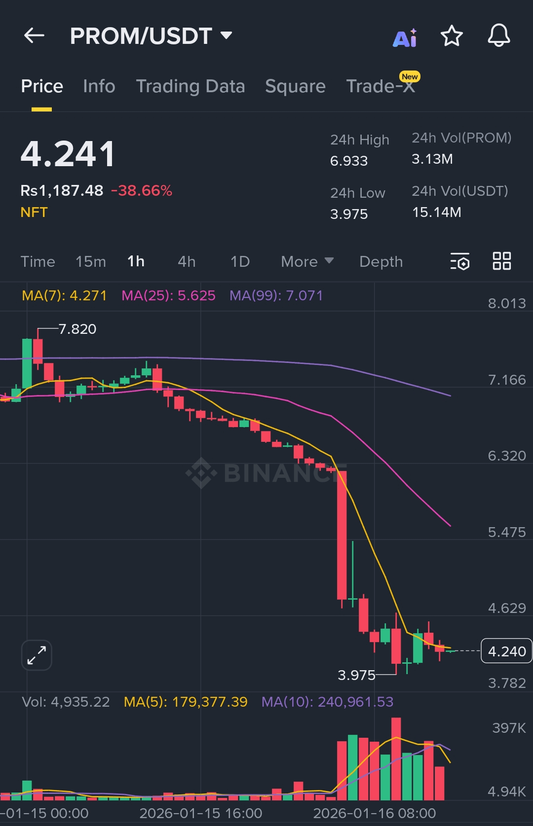 $PROM Po silnej wyprzedaży, PROM stabilizuje się w pobliżu minimów. Momentum spadkowe zwalnia, sugerując, że słabe ręce zostały wypchnięte, a baza może się formować.