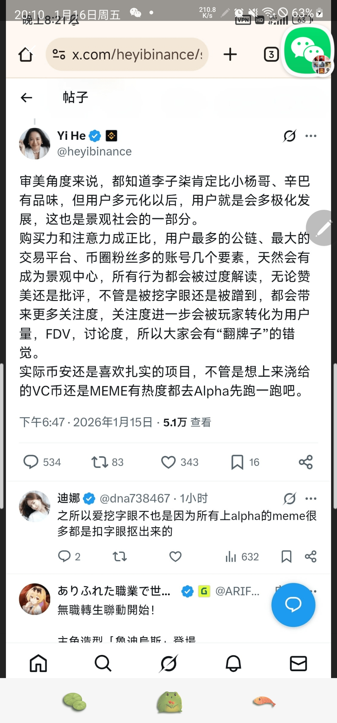W obliczu tej publicznej kontrowersji He Yi szybko zabrała głos na platformach społecznościowych, przyjmując postawę łagodnego mediatora, wzywając branżę do utrzymania harmonii. Zauważyła, że nadmierna obsesja na punkcie porównań danych on-chain może prowadzić do niepotrzebnych konfliktów, podkreślając znaczenie jedności w branży.