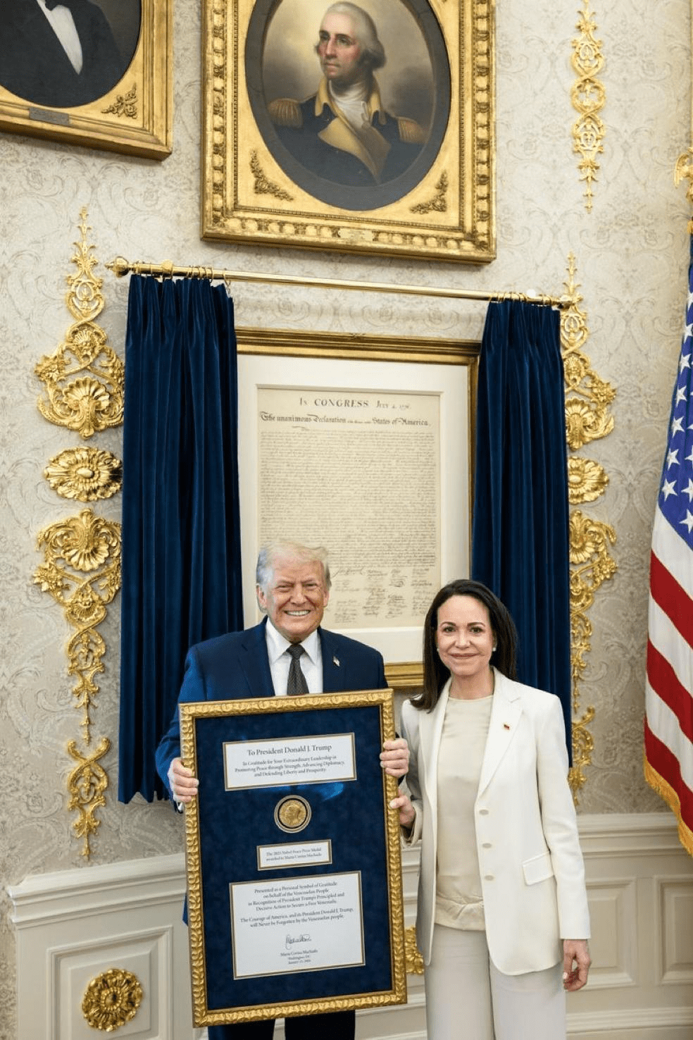Nie przekazała nagrody. María Corina Machado nadal jest laureatką Nagrody Nobla w dziedzinie pokoju.