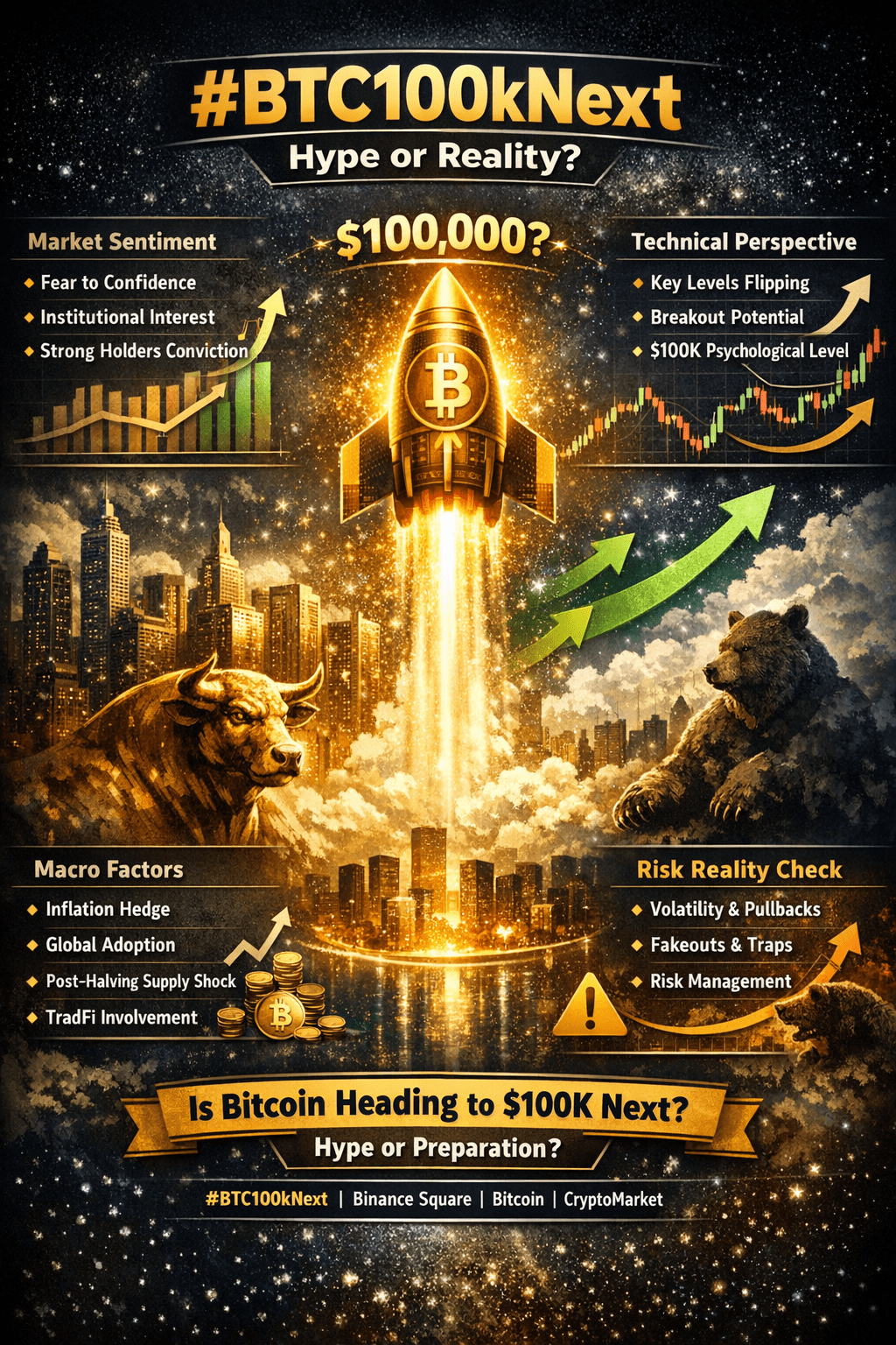 #BTC100kNext nigdy nie był tylko aktywem — to ruch. W każdym cyklu rynkowym, gdy BTC zaczyna znów pokazywać siłę, to samo pytanie staje się popularne w przestrzeni kryptowalut: Czy $100,000 jest następne?