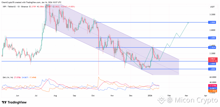 From that base, XRP reclaimed the $2.0 level, shifting short-term behavior. The move enabled a test of the channel’s upper boundary near $2.35 earlier this month. Sellers rejected price at that level, reinforcing it as a near-term ceiling. Then XRP has gone back to the $2.0 which is now acting as immediate support. At the time of writing, XRP market value sits around $2.06.