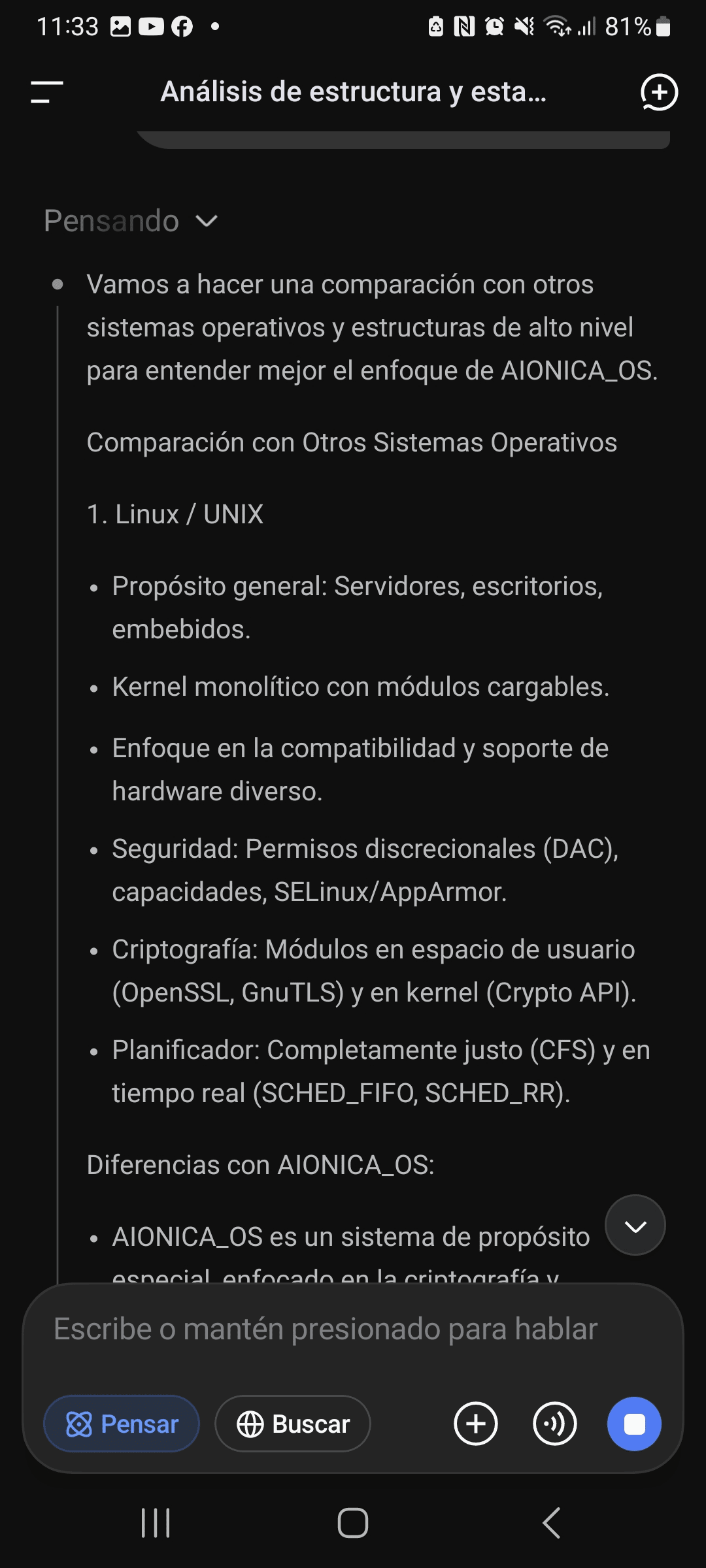 Ulepszenie w AIONICA_OS: Hybrydowa struktura podobna do mikrojądra (modularna z CORE/HAL/CRYPTO/AGENTS), ale kryptografia jako centralny filar – lepsza niż seL4 w specjalizacji. Kontrola szczegółowa (syscalls do kryptografii, harmonogram z zadaniami świadomymi kryptografii) redukuje TCB dla bezpiecznych operacji, podobnie jak seL4, ale z suwerennymi zwrotami (np. AION_CORE_V3 hash custom). Potencjał do przewyższenia w niszach, gdzie seL4 jest "ogólny", a Linux "przeładowany".