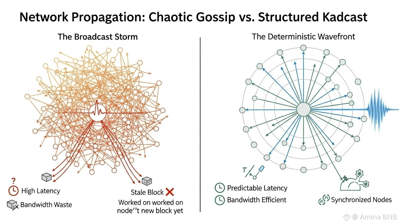 Dusk's solution to this foundational problem is Kadcast. It’s not just a peer-to-peer (P2P) network upgrade; it’s a strategic architectural choice that transforms the network from a liability into a strategic asset. While SA is the brain making fast decisions, Kadcast is the central nervous system transmitting those decisions at the speed of light, with precision and efficiency. For a blockchain built for high-frequency finance, this isn't an optimization it's a prerequisite for existence.