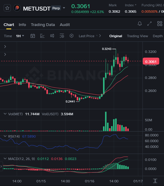 $MET (Meteora): Handluje na poziomie $0.3068. To Król Zmienności Solany. Obecnie znajduje się w ogromnym pionowym trybie odkrywania cen po wybiciu z długiej konsolidacji wokół $0.25. Jeśli chcesz czystej adrenaliny, MET to ruch, ale obecnie jest bardzo zmienny w porównaniu do ustawienia DUSK.