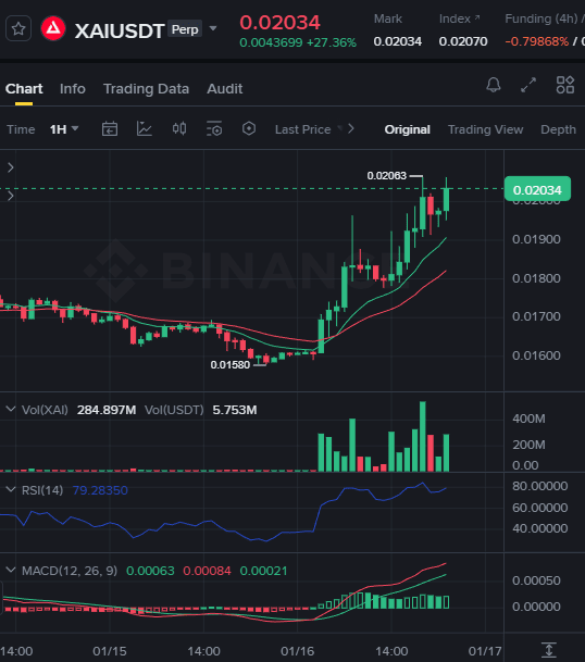 $XAI (@XAI_GAMES ): Handluje na poziomie $0.02030. Dziś zanotował ogromny wzrost z RSI wynoszącym 79.07 na wykresie 1H, co czyni go jeszcze bardziej "przegrzanym" niż #dusk . To gra gamingowa, która obecnie testuje swój lokalny szczyt na poziomie $0.02063.