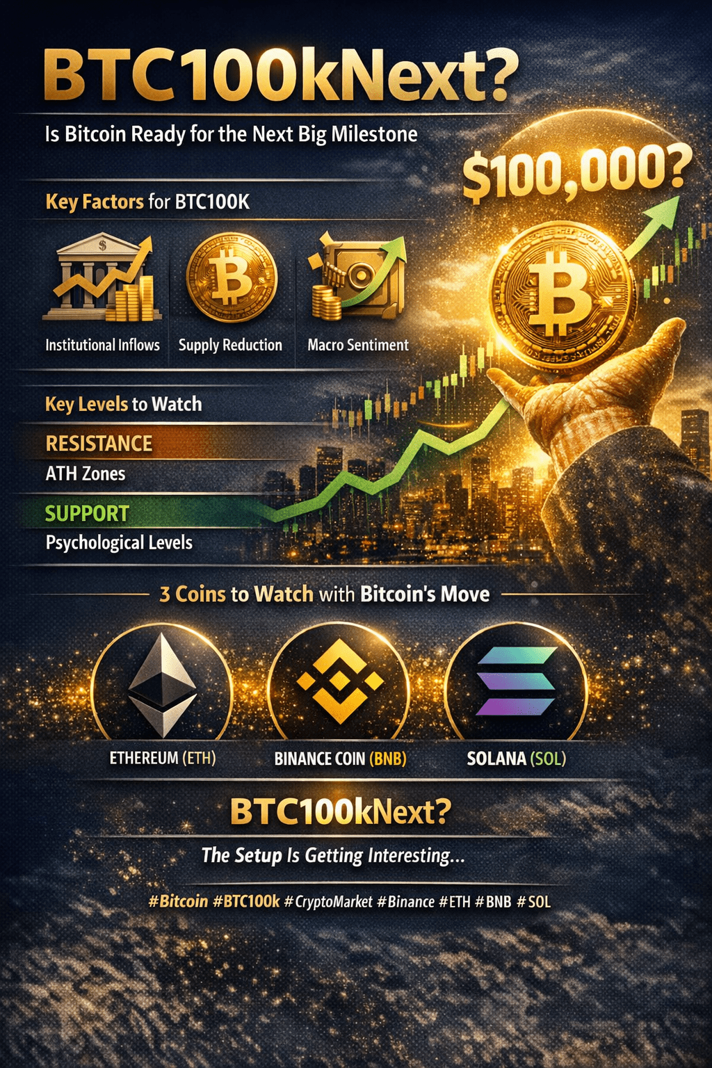 BTC osiągające 100 tys. dolarów to nie tylko hype—jest to możliwość napędzana fundamentami, dynamiką podaży i psychologią rynku. Jednak zmienność pozostaje częścią tej podróży. Mądrzy traderzy obserwują potwierdzenia, zarządzają ryzykiem i unikają emocjonalnych decyzji.