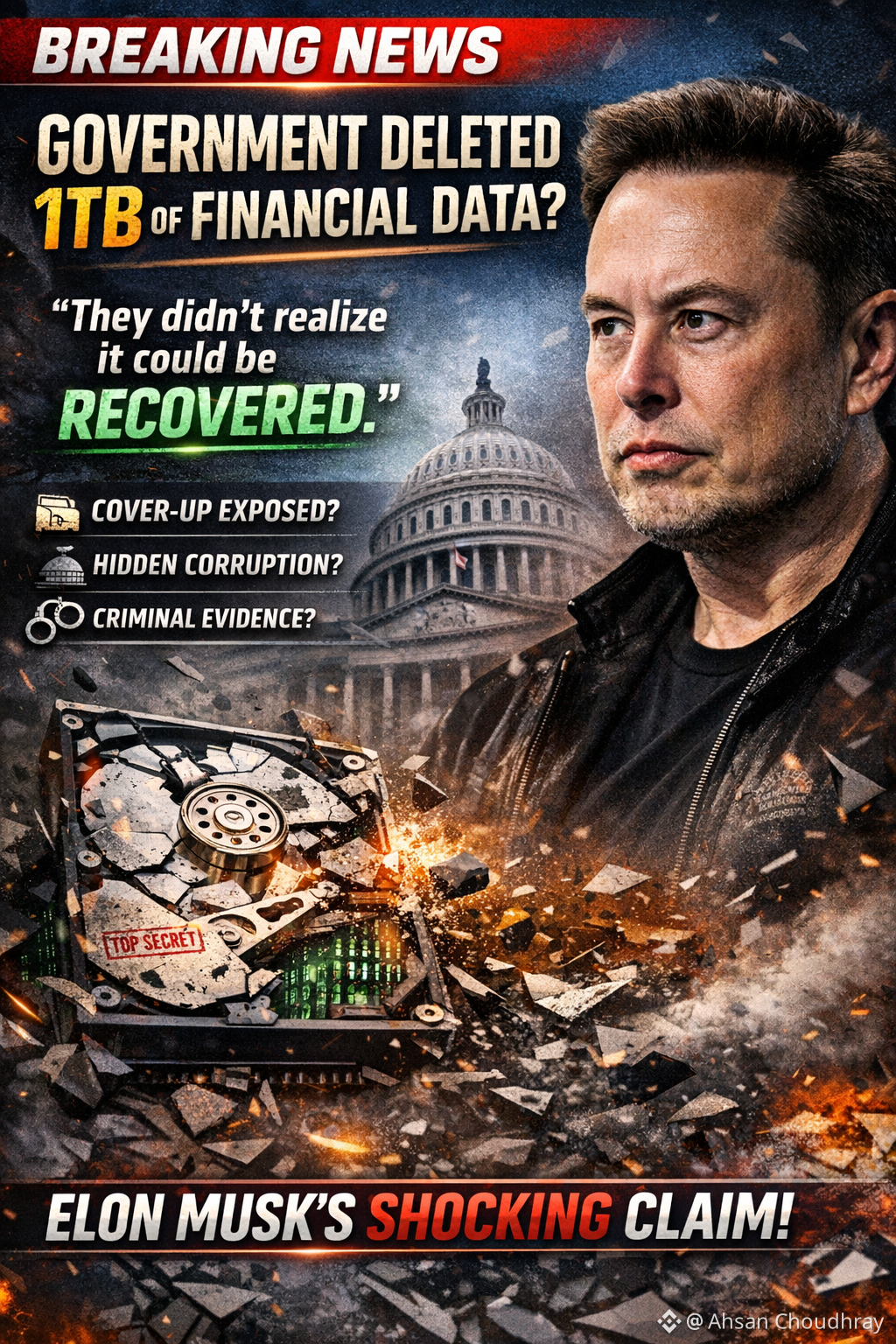 Elon Musk says a massive archive of financial information — allegedly over one terabyte — was deliberately wiped by individuals inside the U.S. government.