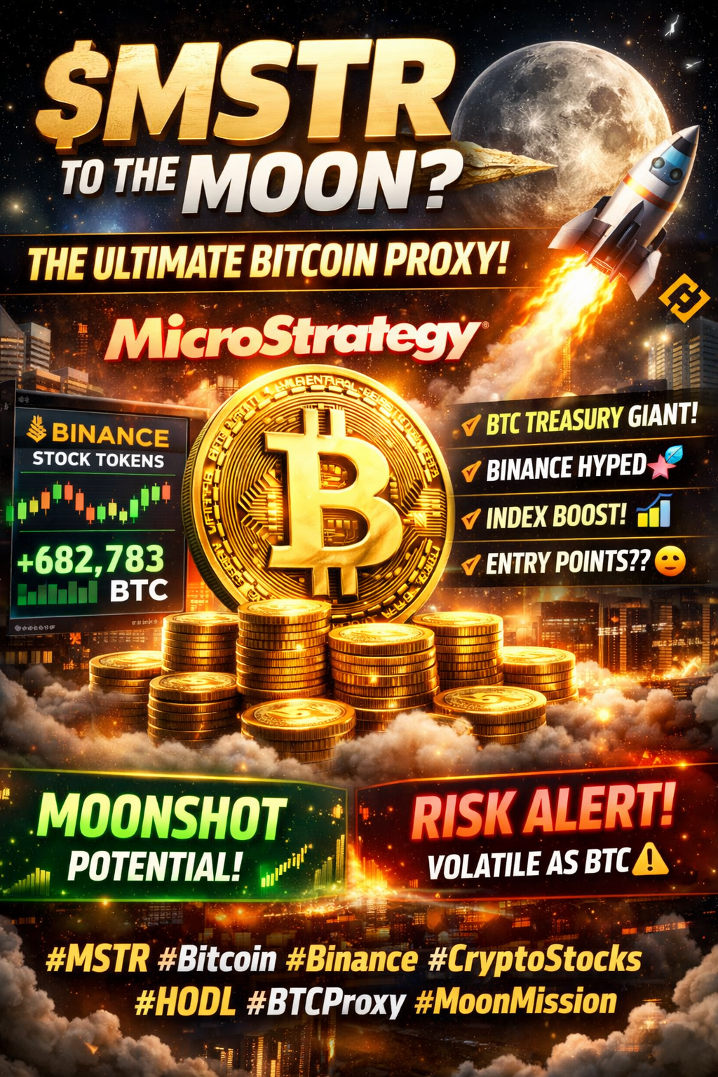 Niezależnie od tego, czy jesteś kryptodegeneratem na Binance, czy wielorybem akcji obserwującym tickery NASDAQ, $MSTR znajduje się na skrzyżowaniu technologii, spekulacji na Bitcoinie i ryzyka dźwigni — to czyste paliwo dla mediów społecznościowych. Jego ogromny skarb BTC oznacza, że każda pompa lub zrzut Bitcoina wysyła wibracje przez cenę $MSTR.