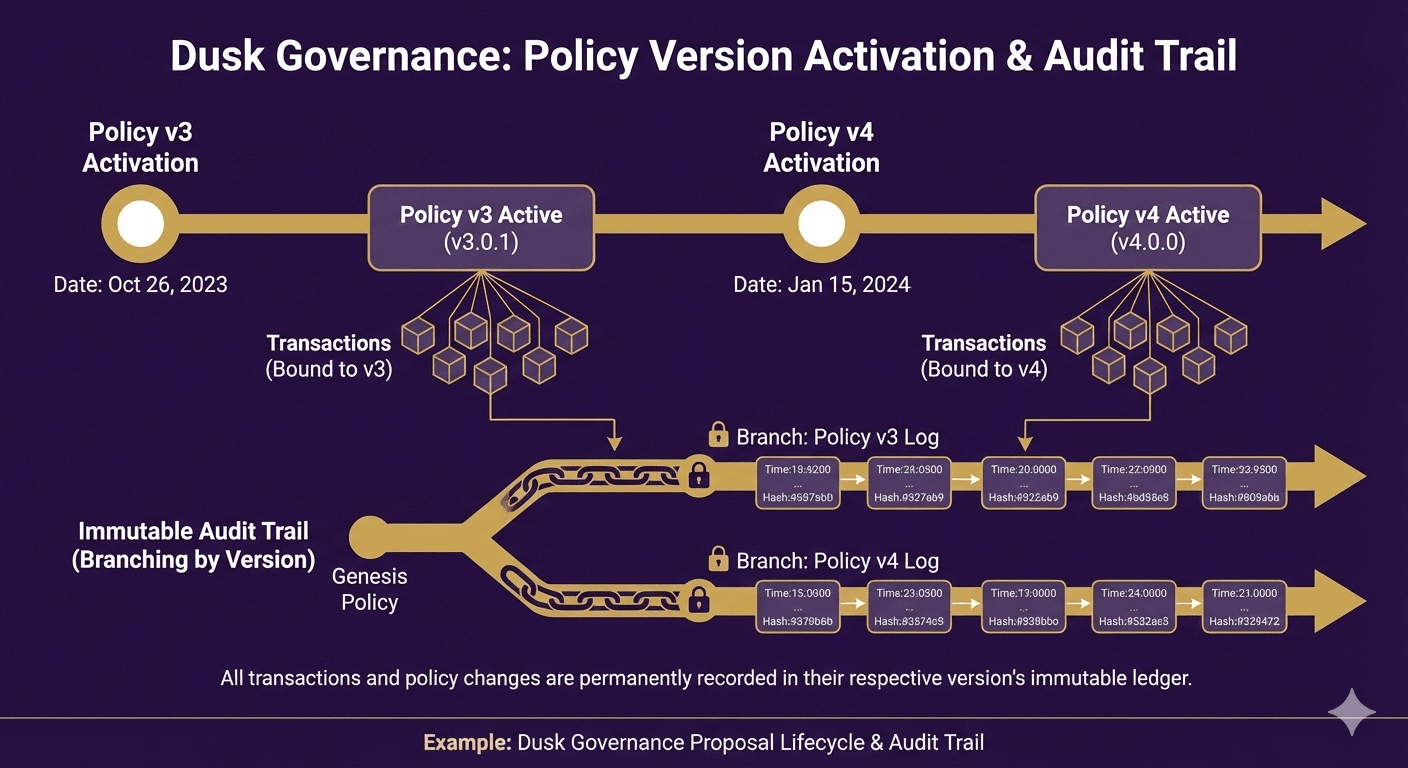 Aktualizacja polityki nie jest komentarzem. To wersjonowane ograniczenie, które wchodzi w życie, bez żadnych wątpliwości co do tego, kiedy miało zastosowanie i co nadpisało. Nie ma „aktualnej interpretacji” jako zabezpieczenia. Jeśli transakcja została zatwierdzona w wersji v4, to v4 ponosi konsekwencje — nawet jeśli v5 została wydana godzinę później i wygląda lepiej w retrospektywie.