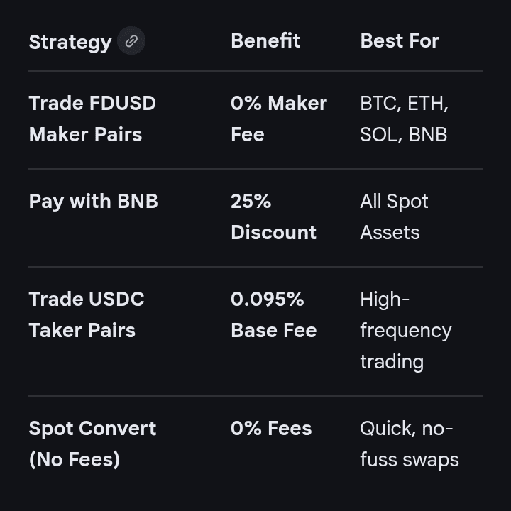 Na styczeń 2026 roku najniższe opłaty spot są dostępne dzięki określonym promocjom stablecoin i wykorzystaniu rodzimych tokenów: