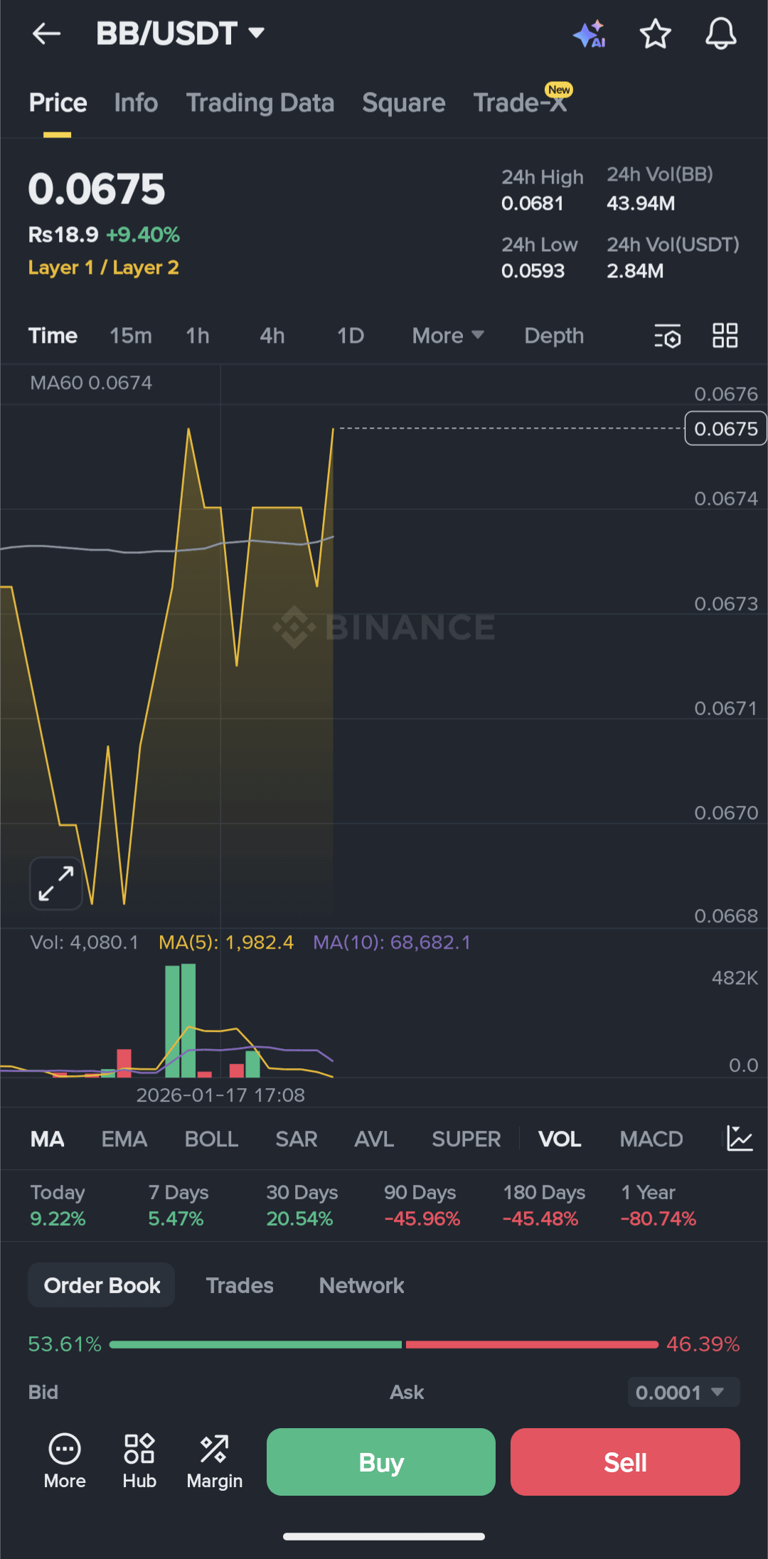 Po utworzeniu solidnej bazy w pobliżu dolnego zakresu, cena agresywnie wzrosła, co wskazuje, że kupujący znowu przejęli kontrolę. Ostatni impulsowy ruch sugeruje siłę, a nie słabe odbicie, a tak długo jak $BB utrzymuje się powyżej strefy wybicia, kontynuacja w kierunku wyższych poziomów pozostaje prawdopodobna.