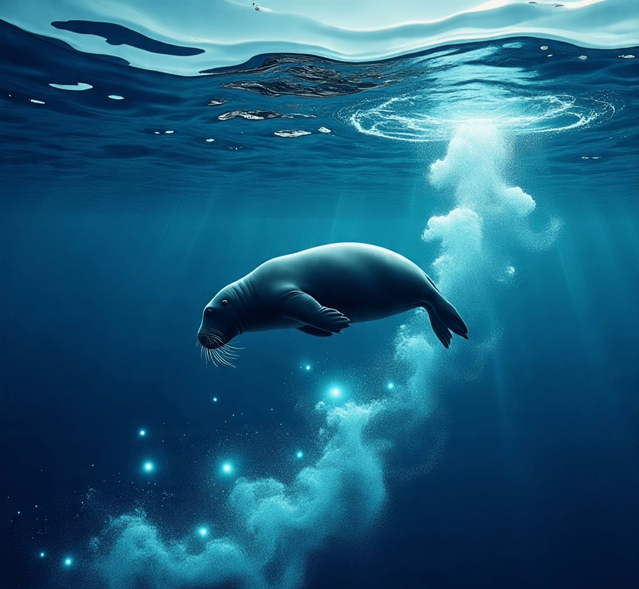 Być może najbardziej eleganckim aspektem morświna jest jego dualność. Jest stworzeniem zarówno solidnego lodu, jak i płynnych, ciemnych głębin. Może zanurzać się w głębokich ciśnieniach, wstrzymując oddech, poruszając się po niewidzialnym świecie poniżej. To jest istota strategicznej adaptacji.