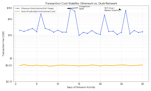 Przewidywalność zmniejsza ryzyko strategiczne. Traderzy nie muszą nadmiernie rekompensować za slippage lub zmienność gazu, co umożliwia płynniejsze wdrażanie kapitału. Instytucje korzystają z prywatnych, zgodnych szlaków dla tokenizowanych aktywów i rozliczeń na łańcuchu, co czyni Dusk praktycznym wyborem dla profesjonalnych finansów.