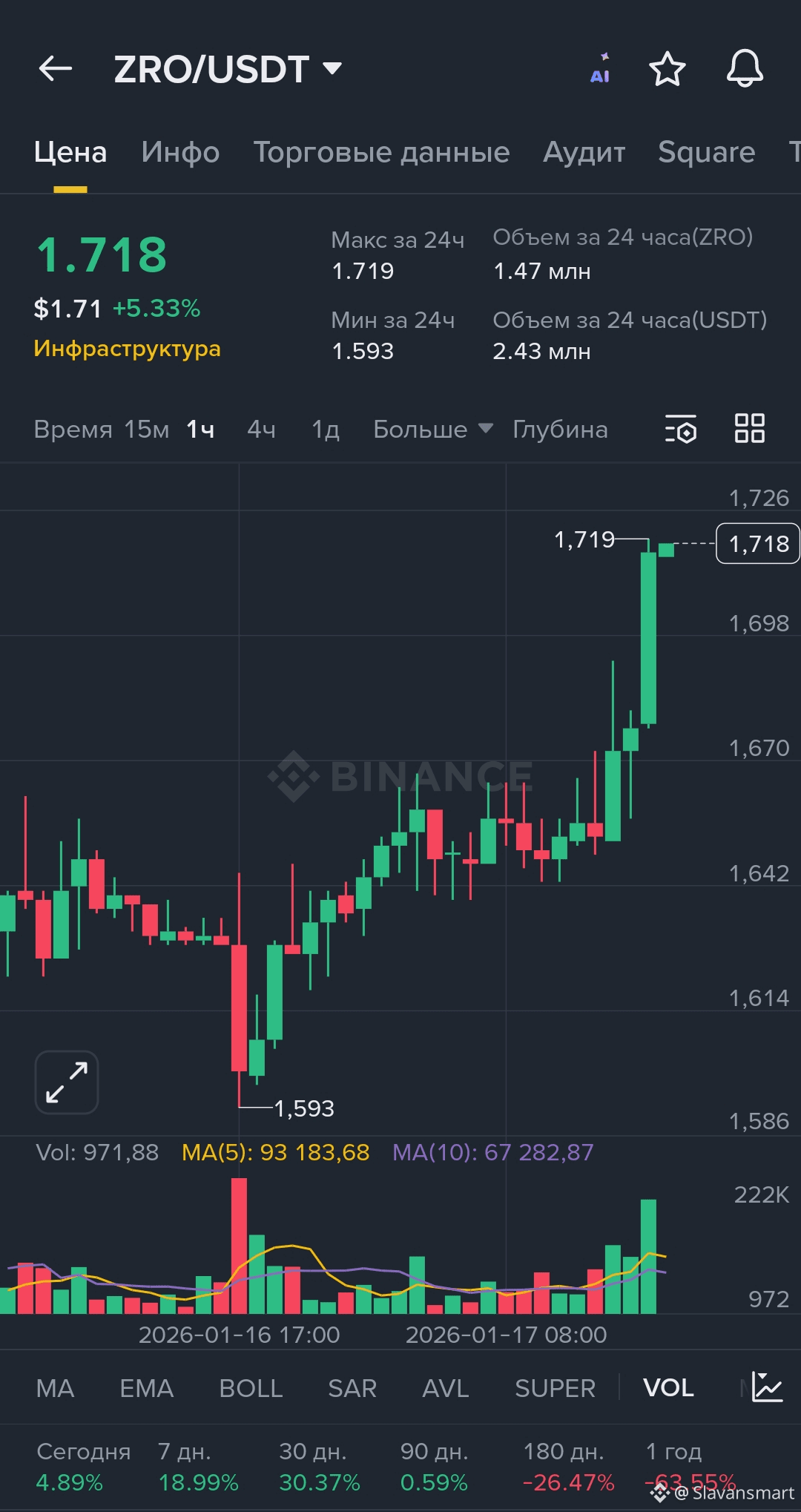 Цена ZRO/USDT колеблется около ~1.6💲(данные последних дней).
